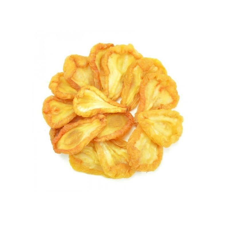 Todo o sabor da fruta em suas propriedades nutricionais é mantido, fazendo da fruta seca, um produto natural e saudável. A Pera atua na boa formação dos ossos, dentes, sangue, e sistema nervoso.