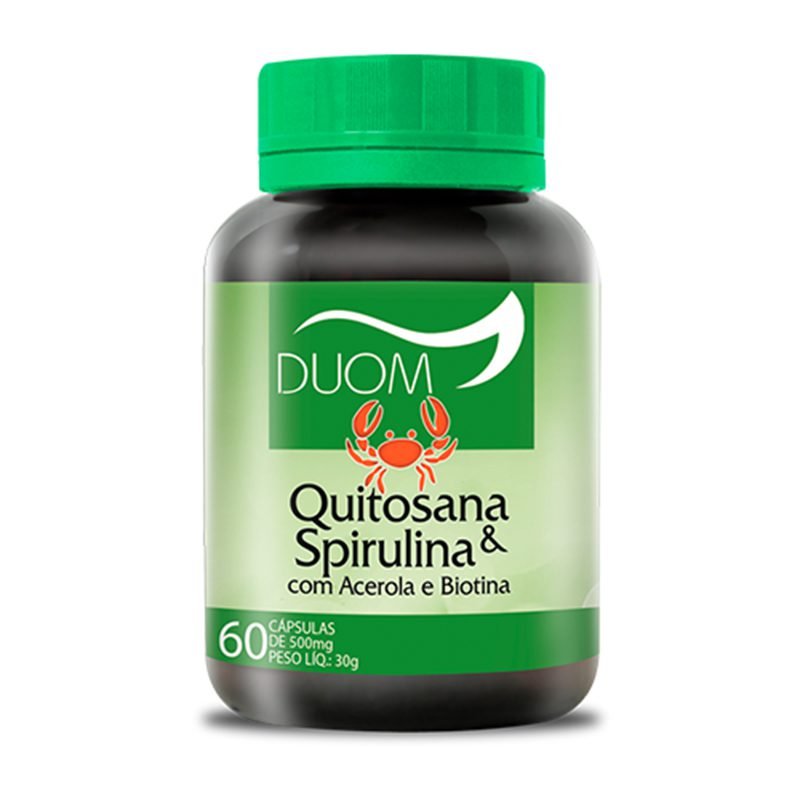 Quitosana com Spirulina + Acerola + Biotina – 60 Cápsulas 500mg – Duom