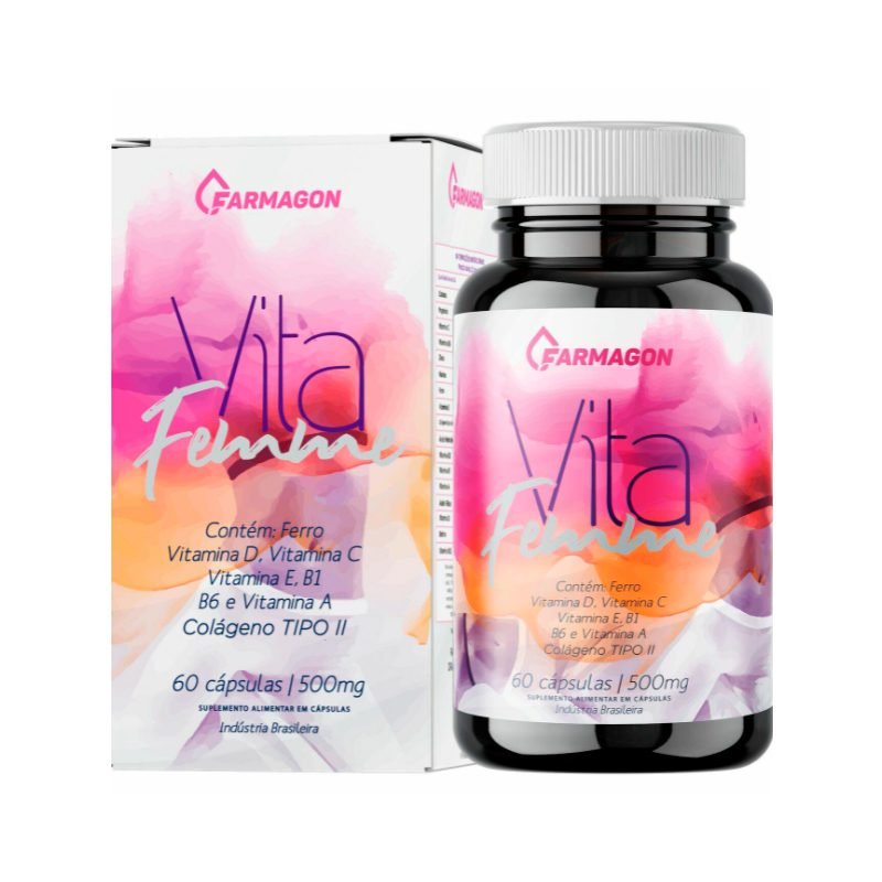 Suplemento de Vitaminas e Minerais em Cápsulas O VITA FEMME é caracterizado por ser um destes nutri cosméticos, que apresenta em sua composição vitaminas A, B1, B2, B3, B6, B12, C, D, além de ferro, zinco, manganês, ácido pantotênico e ácido fólico. Ele ajuda a suprir as carências nutricionais e minerais necessárias para o organismo da mulher.